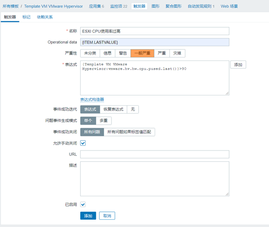 触发器原型,这里以Template VM VMware模板为例创建一个磁盘的触发器原型